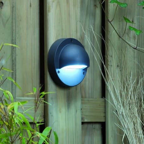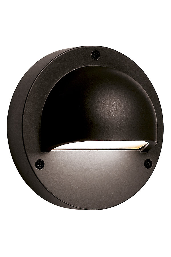 Pyöreä alaspäin valaiseva seinävalaisin, joka sopii esimerkiksi kulkureitin tai talon numerokyltin valaisimeksi.