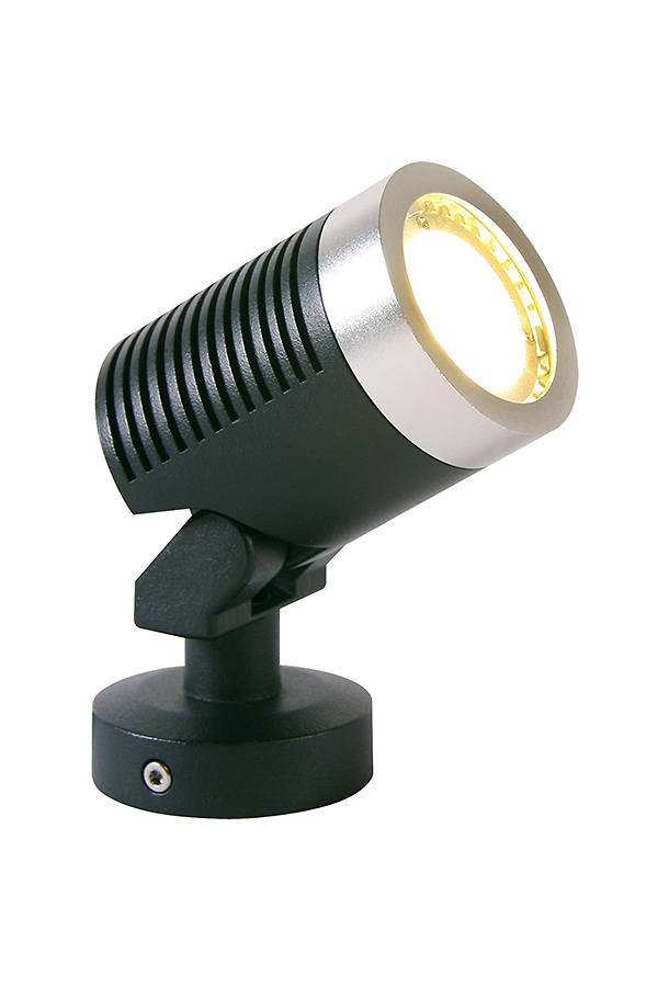 Tyylikäs ja erittäin tehokas kohdevalo 5 watin led-polttimolla. Materiaali on mustan ja hopean väriseksi maalattua alumiinia.