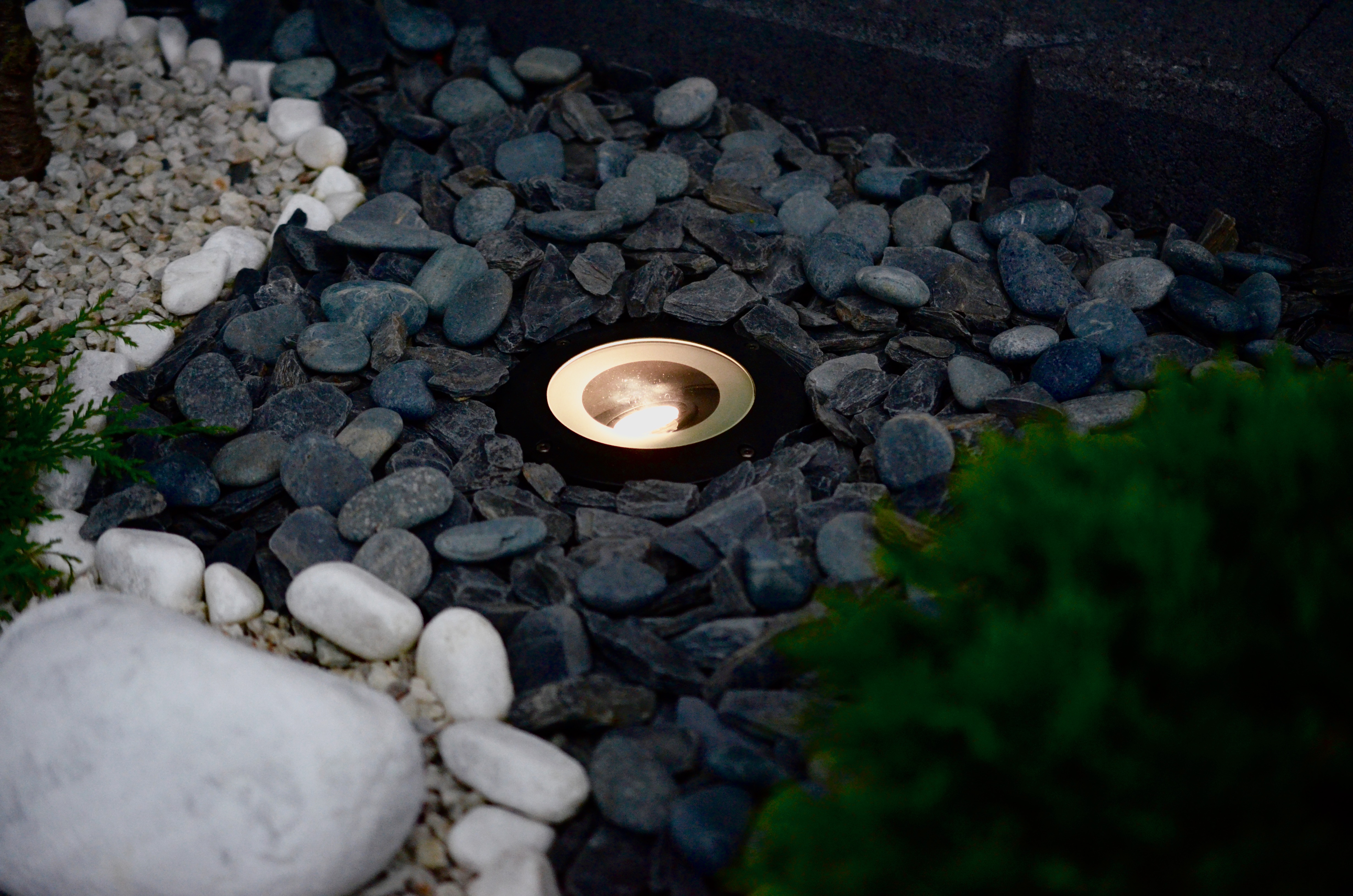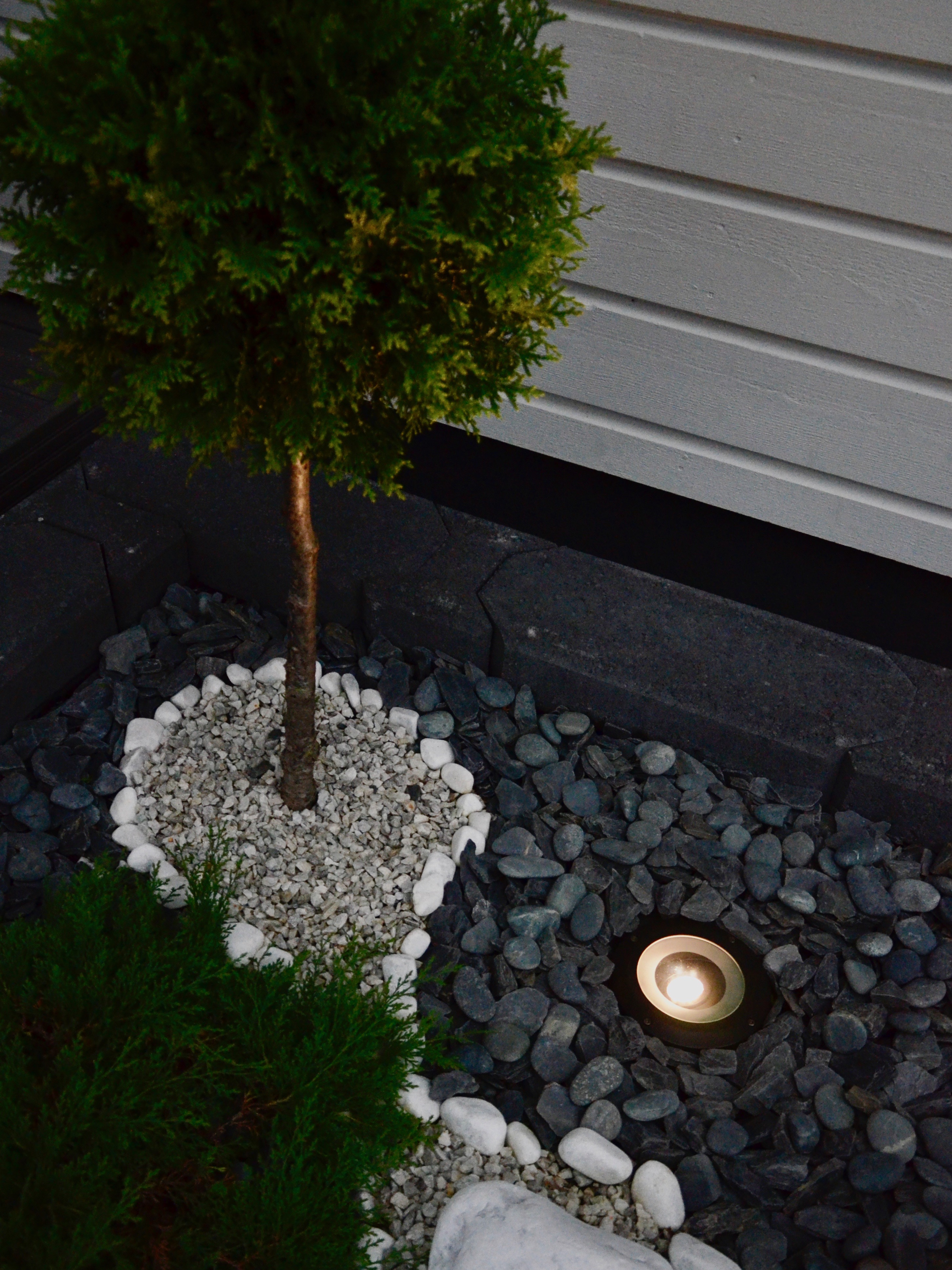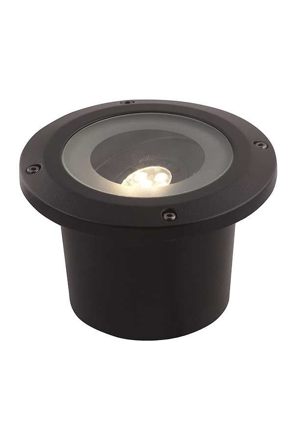 Tyylikäs ja tehokas maahan upotettava maavalo, jonka valokulmaa voi säätää sopivaksi.